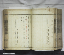 岡山県下川上郡領字村戸長役場地所売買及質入書入奧書割印帳客月洪水の際流失の件